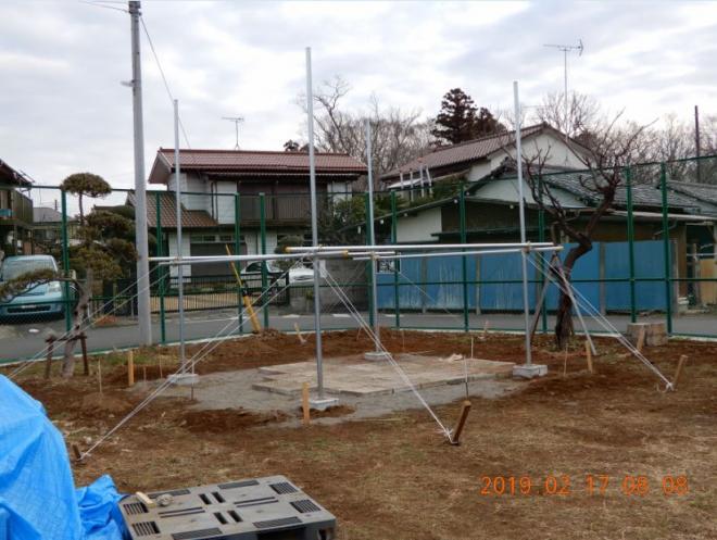 設置位置を決め、その後は、地面を平らに均し、基礎ブロックを埋め込み、鉄のパイプでくみ上げていきます。