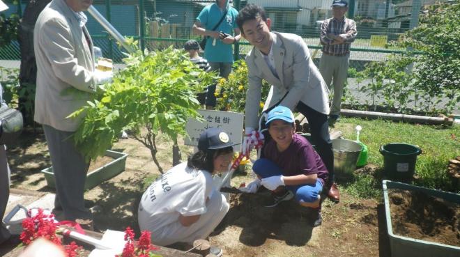 たくさんの人たちから親しみを持たれるように願いを込めて、藤の記念植樹が行われました。