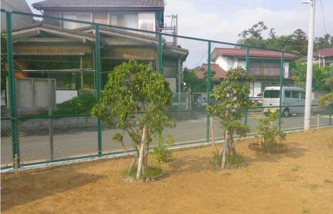フェンスは高さが3mと1.2mの2種類です。整備後は、ボール遊びができるような空間になります。