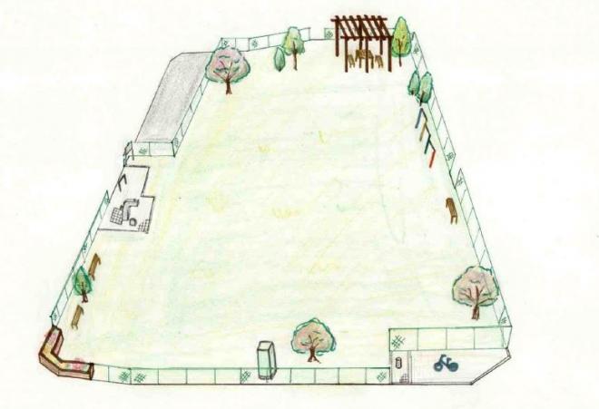 整備する施設は、「花壇」「日陰だな」「駐輪場」等です。