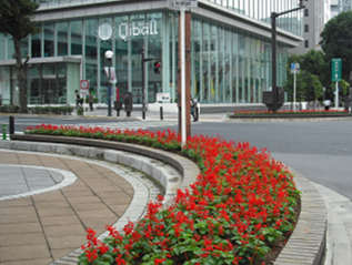 花のあふれるまちづくりを推進するため、中心市街地にある交差点等の花壇13か所において、年4回花の植替えを行いました。