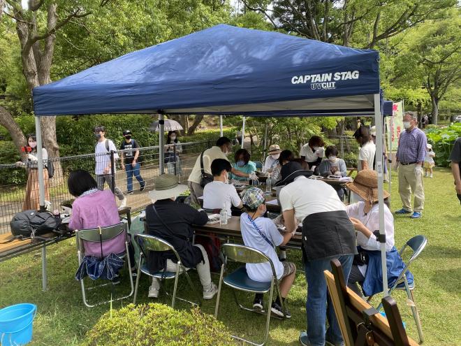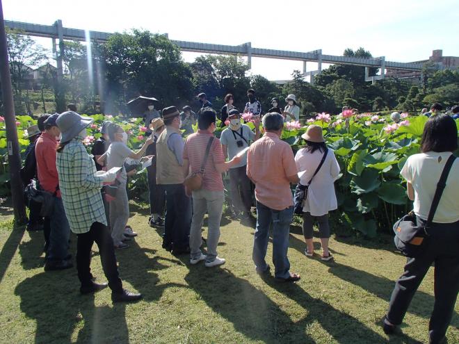 千葉公園内蓮華亭にてミニ蓮栽培講習を実施しました。参加費は1000円、10:00~の1回実施し、計18名参加されました。