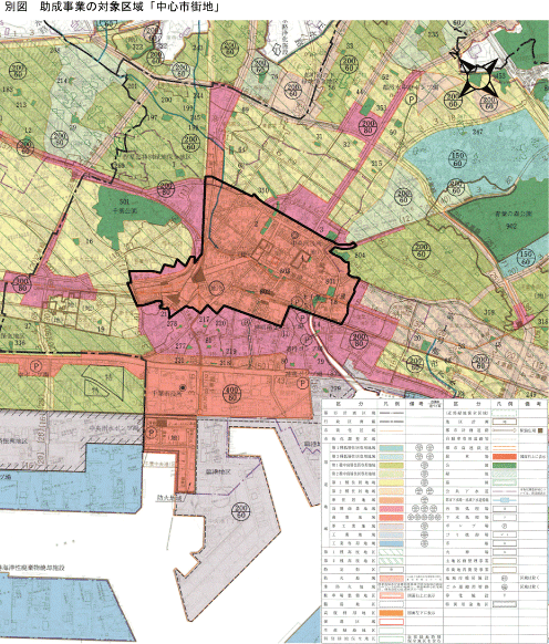中心市街地内で、用途地域が商業地域または近隣商業地域である場所が対象です。