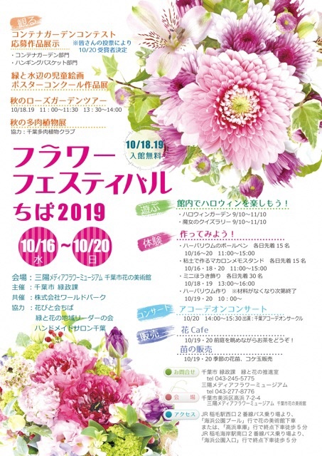 10月15日(火曜日)から20日(日曜日) フラワーフェスティバルちば2019にて花cafeや体験講座を実施!