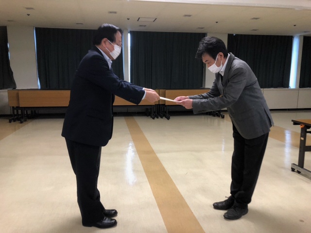令和3年10月25日(月曜日)に次期千葉市緑と水辺のまちづくりプランの策定に向けて、神谷千葉市長(代理出席:鈴木副市長)から千葉市新みどりと水辺の基本計画策定委員会の木下会長(千葉大学大学院園芸学研究院)あてに、諮問の手交を行いました。