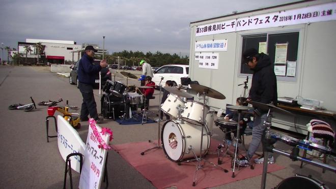 ドラムをCD演奏に合わせて叩く体験です。
