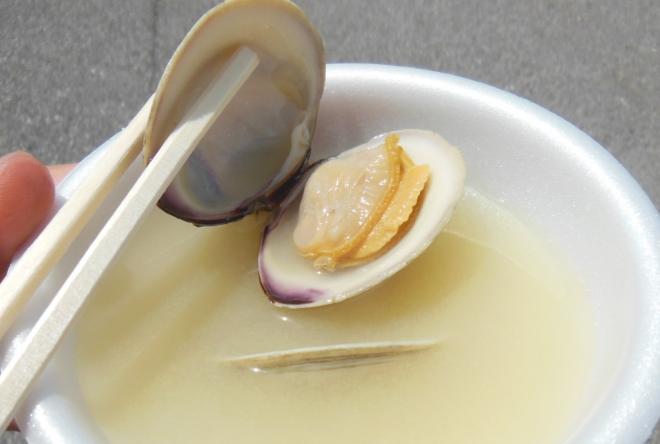 ホンビノス貝の味噌汁試食