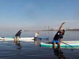 マリンスポーツが楽しめる検見川の浜でSUPヨガの体験ができます。