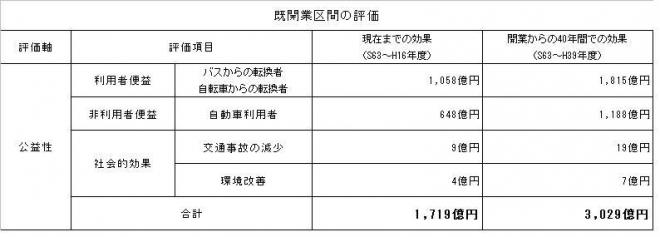 なお、千葉都市モノレールの整備による便益は、開業から平成16年度までで約1,700億円、開業から40年間では約3,000億円と見込まれている。