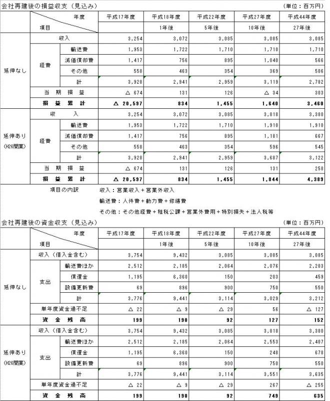会社の経営は毎年度、市及び県による財政支援によって支えられていたが、この先、運輸収入に大きな増加が見込めないまま現状で推移していった場合、平成44年度までの28年間で、単年度黒字を生み出せないまま累計損失は約370億円となり、不足資金の累計は約280億円に及ぶものと見込まれる。