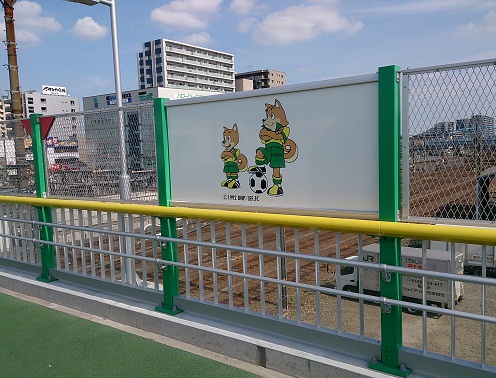 | 高欄(黄色)と支柱(緑)、キャラクターロゴ | |