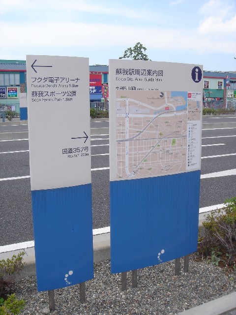 JR蘇我駅前周辺及び蘇我臨海部地域における歩行者の利便性を高めるため、西口駅前広場及び都市計画道路蘇我駅前線・川崎町東西1号線・川崎町東西2号線・川崎町南北線に案内サインを設置しました。