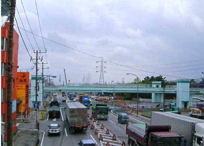 JR蘇我駅及びその周辺地区から臨海部の千葉市蘇我スポーツ公園や商業施設に来訪する歩行者等の安全な動線確保を図るため、都市計画道路川崎町東西1号線及び都市計画道路川崎町東西2号線と国道357号の交差箇所に立体横断施設(横断歩道橋)を設置しました。