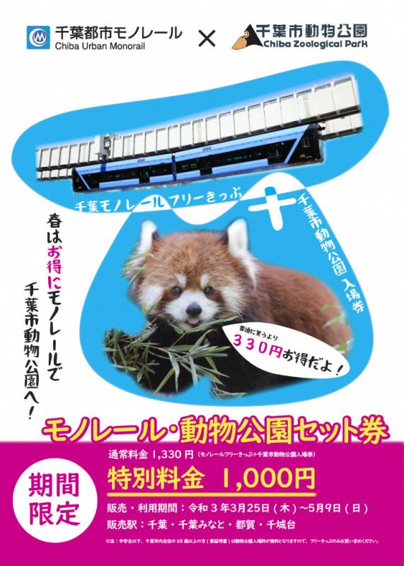 モノレールフリーきっぷ + 動物公園入場券の、お得なセット券も販売中です。
