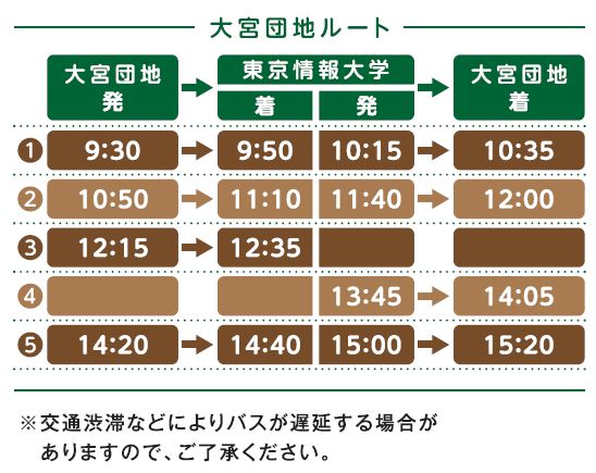 「大宮台バス折り返し場」から無料シャトルバスの運行を予定しています。