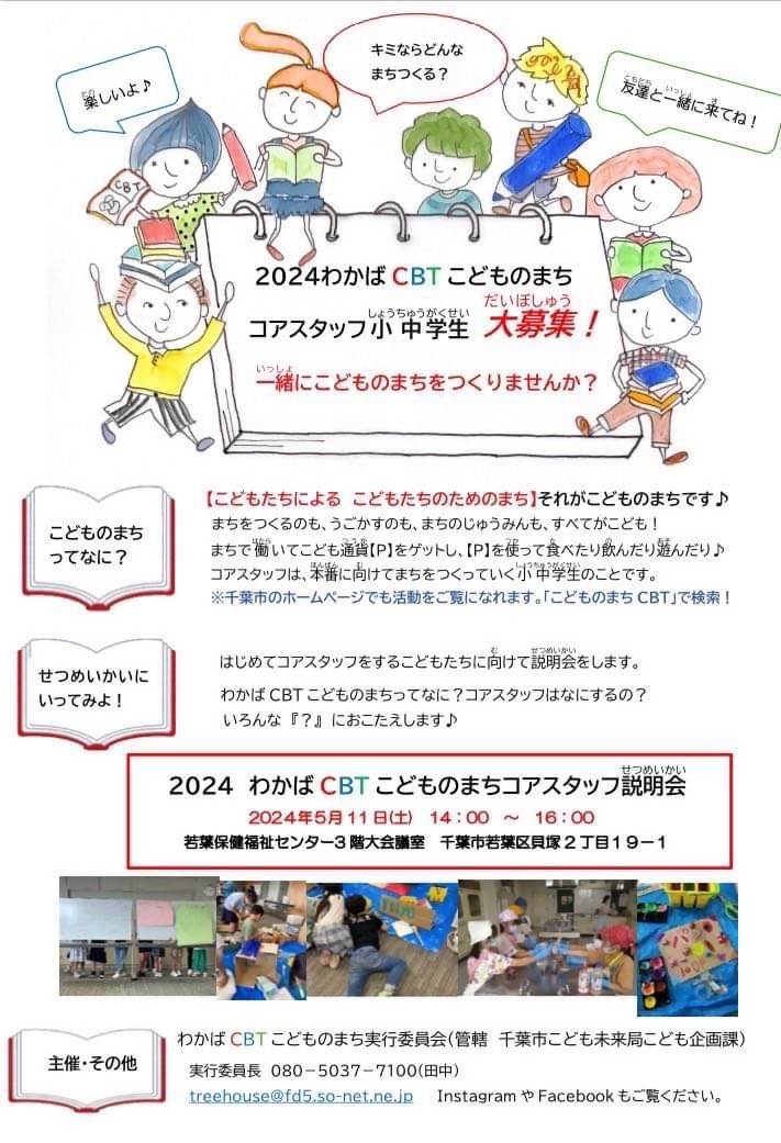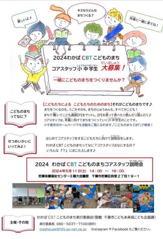 わかばCBTこどものまちでは、本番に向けて一緒に「まち」をつくっていく小中学生を募集しています。