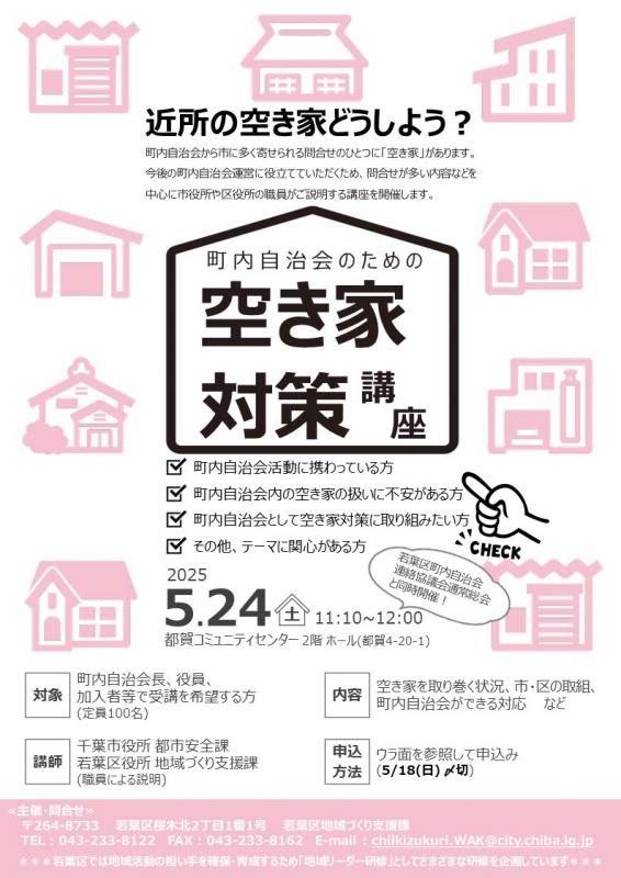 ホーム > 若葉区役所 > 若葉区の紹介 > 区の取り組み > 地域支援プラットフォーム「ぷらっとWAKABA」をご活用ください! > 地域リーダー研修 > 町内自治会のための空き家対策講座(令和7年度地域リーダー研修)