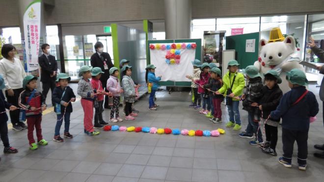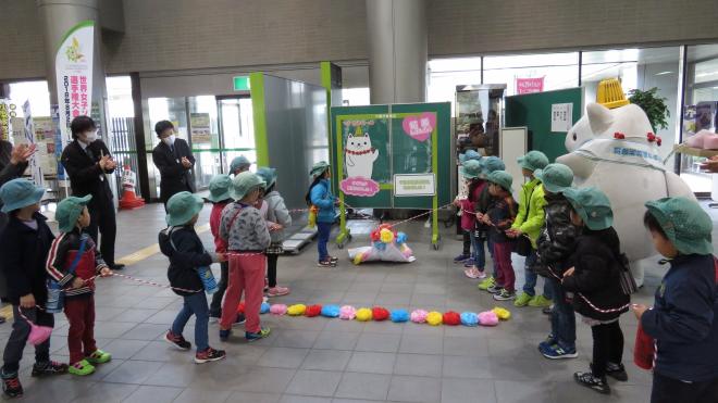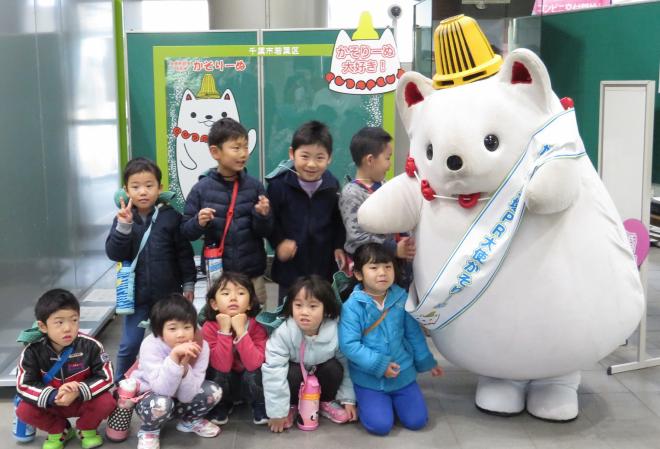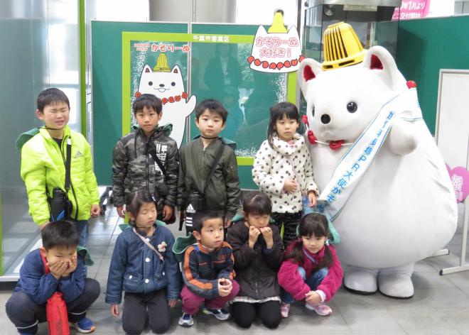 (写真)都賀保育園のみなさんとかそりーぬで記念撮影しました |