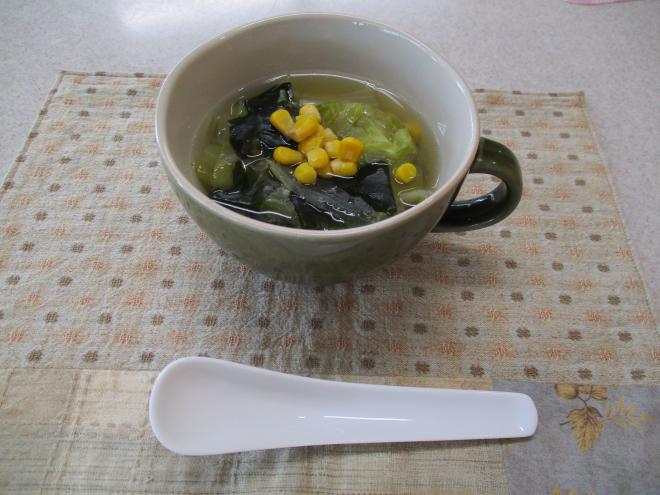 | ちんげん菜としめじのクリームスープ | 春雨のピリ辛煮 | 長芋とオクラのサラダ |