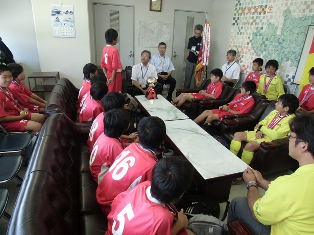 平成26年7月29日(火曜日)に、千葉市少年サッカー大会(6年生の部)で優勝された千城台FCの方々が、若葉区役所へ表敬訪問にお見えになりました。