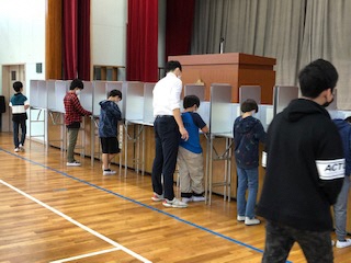 市長候補役(弁護士等)の三人により演説いただき、質疑応答後、小学生による投票が行われました。