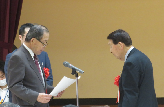 総会の前に、長きに渡り若葉区の発展のためにご尽力いただきました8名の方の表彰が行われました。表彰を受けられた皆様、大変おめでとうございます。特に、小川会長におかれましては、長きにわたり若葉区の地域社会の発展のため、若葉区長内自治会連絡協議会の会長としてご尽力いただきましたこと、心より感謝を申し上げます。
