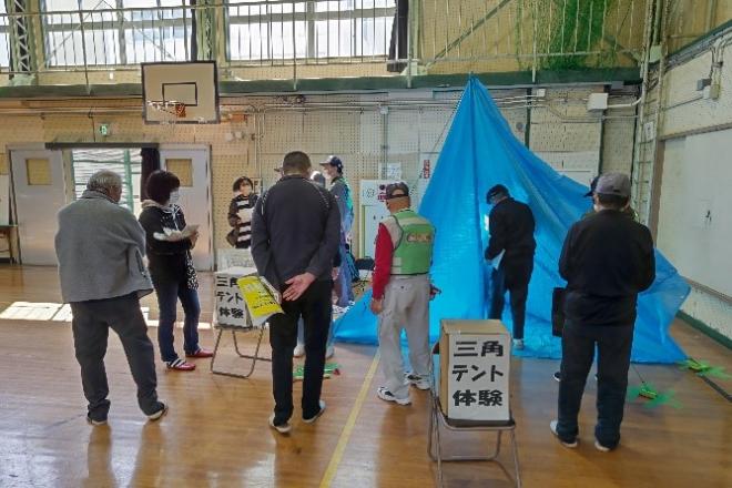 その様な中、若葉区では、廃校となった旧大宮台小学校を活用し、災害発生時に学校などで開設する避難所を想定した「模擬避難所」の見学・体験会を開催しました。