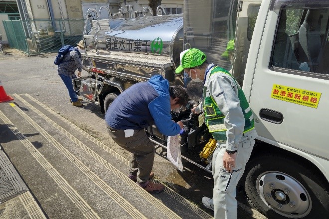 当日は、66人の見学者が訪れ、避難所の見学ツアーを行ったほか、若葉消防署によるAED講習や、水道事業事務所による給水体験、千葉災害ボランティア連絡会によるブルーシートテントの組み立て体験などを行い、避難所生活の大変さを知ってもらいました。