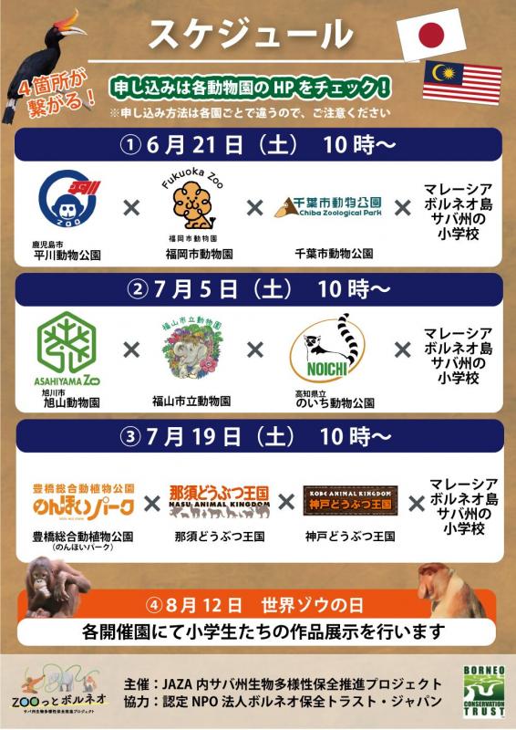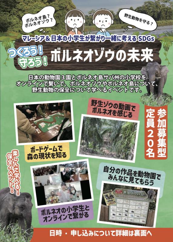 日本の動物園3園とボルネオ島サバ州の小学校をオンラインで繋いで、ボルネオゾウとその森を守るために「私たちにできること」を一緒に学び考える教育プログラムです。