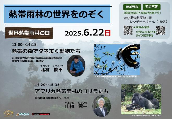 6月22日は世界熱帯雨林の日です。世界熱帯雨林の日に合わせて、熱帯雨林に生息する生物についての講演会を開催します。