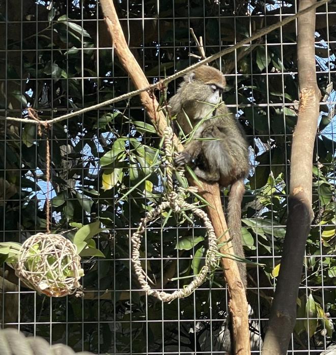 サルの様々な行動を引き出すために、フィーダー・遊具作りのワークショップイベントを開催しました。講座を聞いて、環境エンリッチメントについて詳しく知ってもらい、サルのことを考えてフィーダー(ラタンボール)・遊具(リース)を作ってもらいました。展示場に吊るして設置することで、器用な手を使う様子やサルの種類による行動の違いを観察してもらいました。