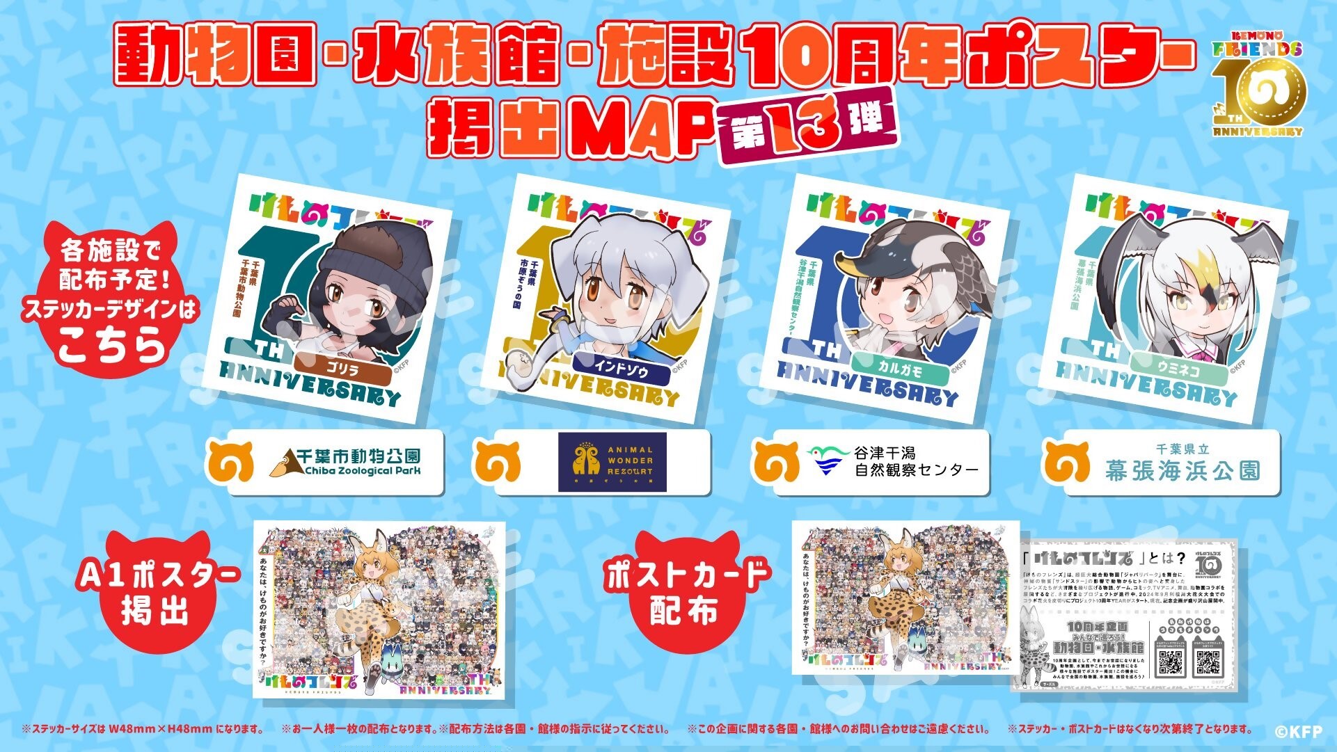 園内に記念ポスターを掲出するほか、10周年記念ポストカードと当園限定デザインのコラボステッカーを数量限定で配布します。