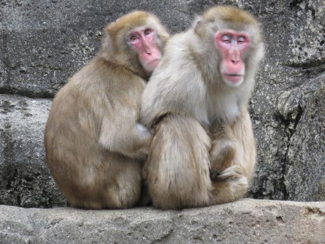 当園では現在25頭のホンドザルを飼育しており、冬の寒い季節は暖を取るために数頭で身を寄せ合って過ごしています。