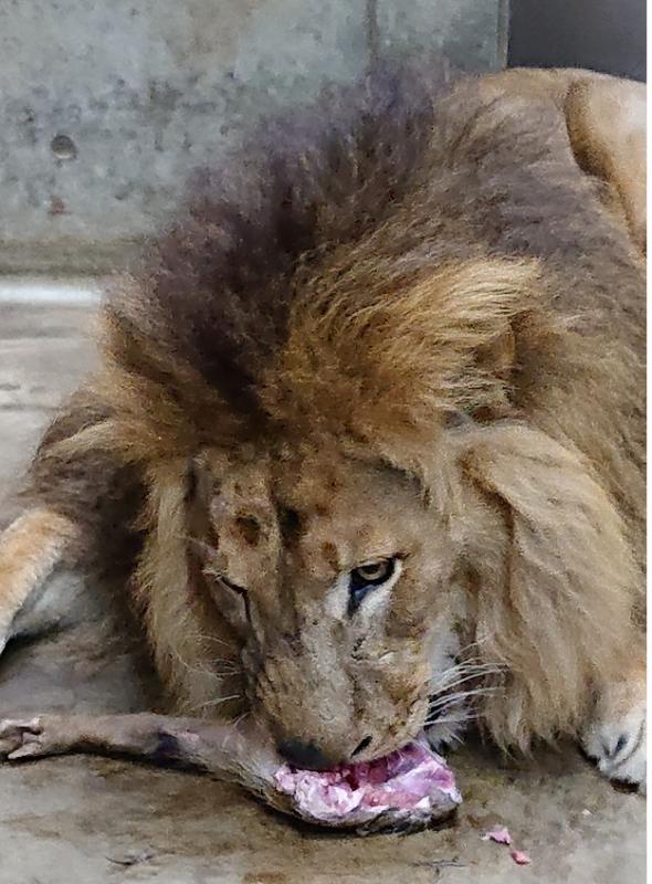 ライオン「トウヤ」への試験給餌の様子