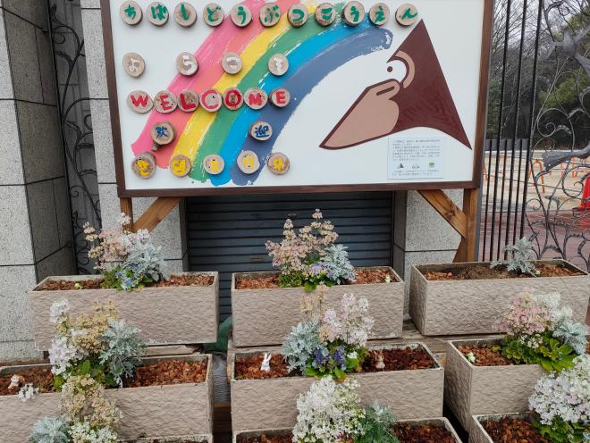 特定非営利活動法人フォレストサウンド(外部サイトへリンク)(別ウインドウで開く)が運営する事業所の活動です。 正門前にプランターを設置し、花の植え付けや手入れなどをしていただいています。 |
